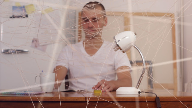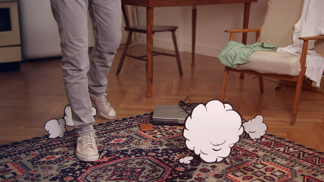 It's a game of imagination provoked by sound. Individual sounds penetrating into the apartment of the main character relieved of their visual designates evoke images distant from its origins.